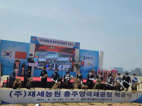 容百科技董事長(zhǎng)白厚善、總裁劉相烈、副總裁劉德賢、正極事業(yè)部總經(jīng)理佘圣賢與韓國(guó)忠州市副市長(zhǎng)、忠州市議會(huì)議長(zhǎng)、忠清北道投資科科長(zhǎng)等相關(guān)領(lǐng)導(dǎo)出席開(kāi)工儀式。公司總裁劉相烈致辭中表示,容百科技韓國(guó)現(xiàn)代化正極工廠結(jié)合中韓資本與技術(shù),打造公司在高鎳正極材料領(lǐng)域的全球領(lǐng)先地位。